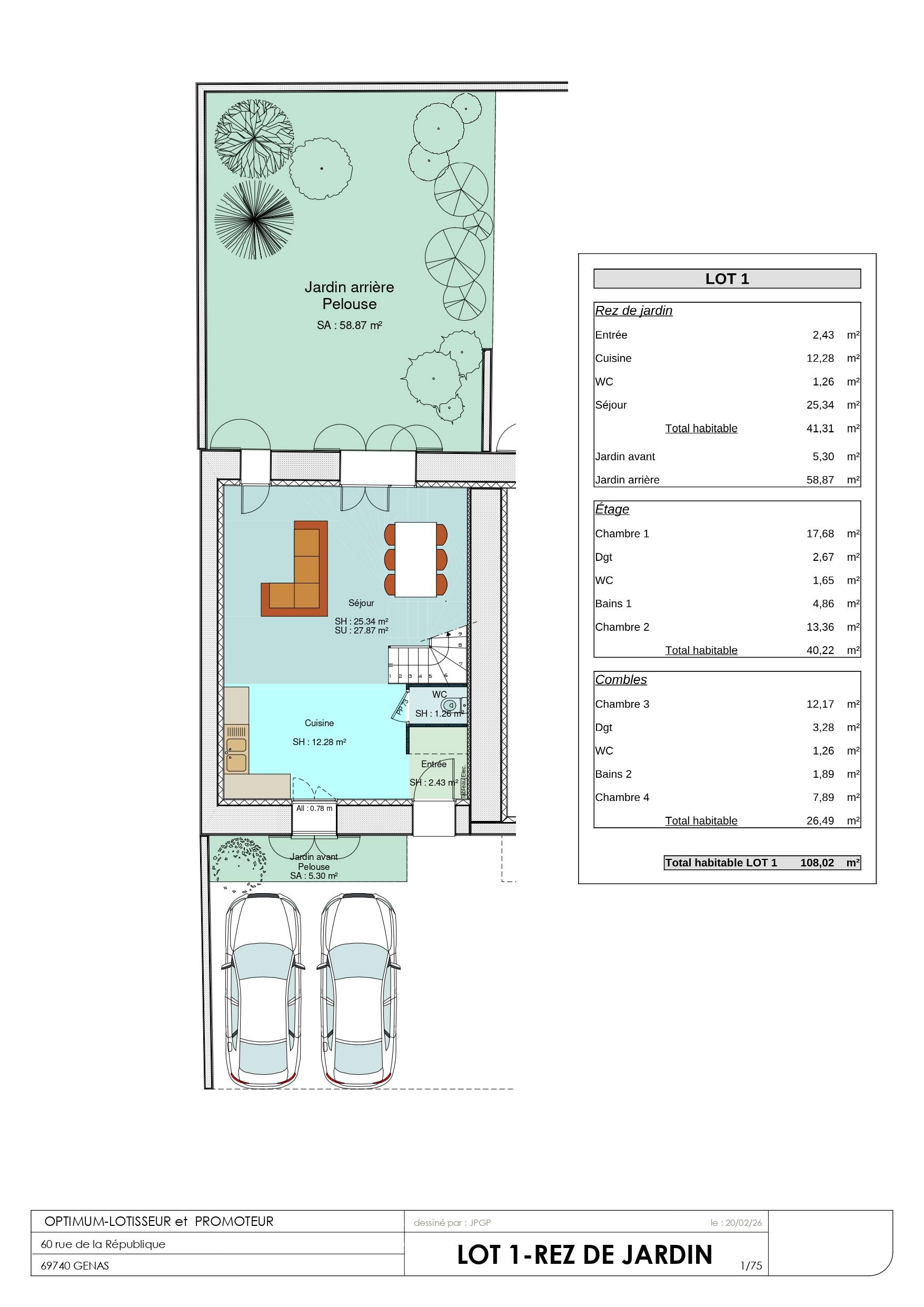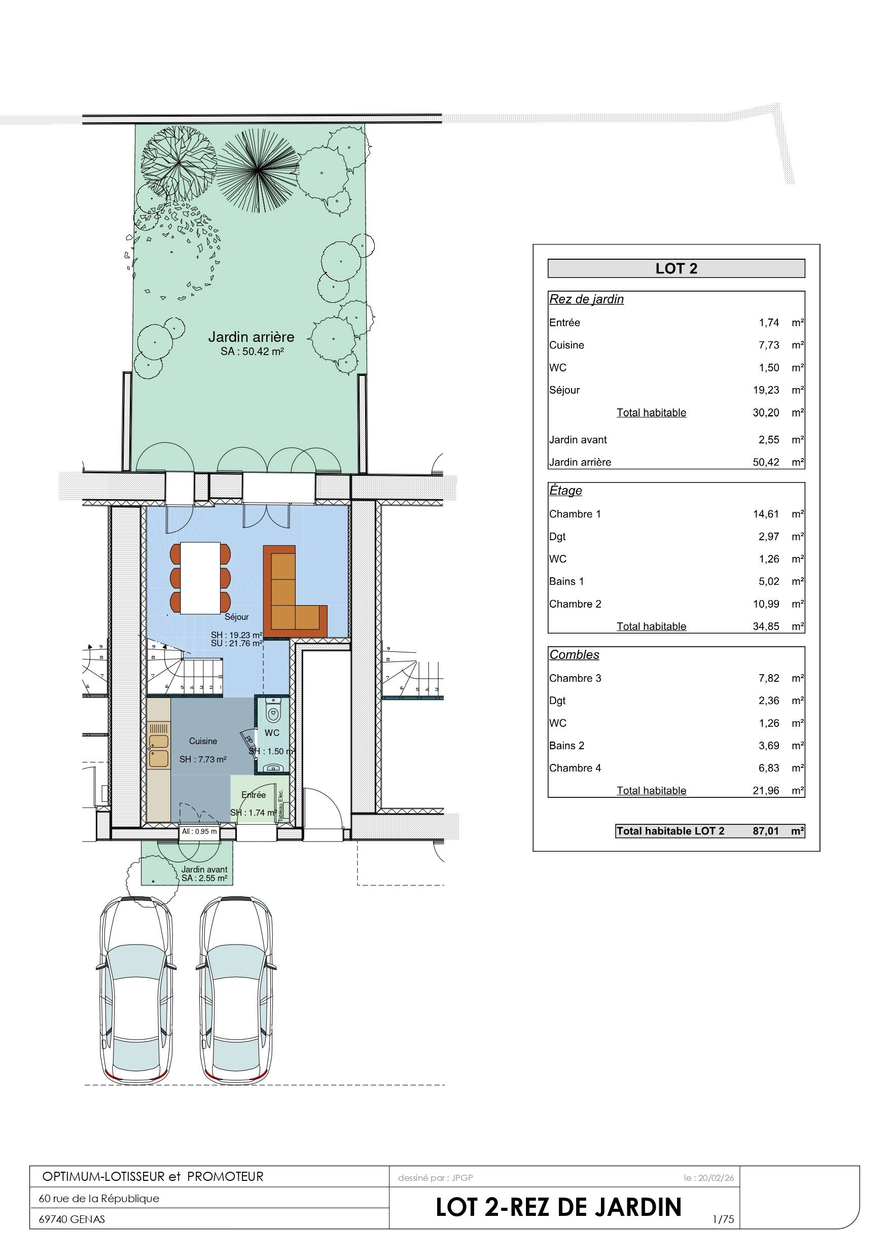 Chaque maison dispose de deux places de parking privatives et d'un terrain attenant.